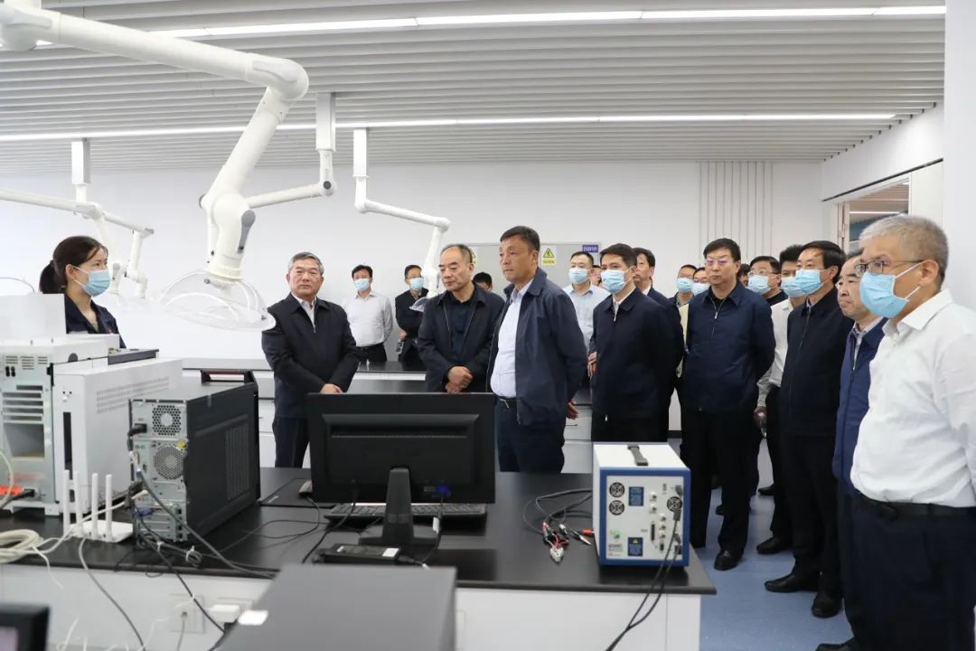 张海涛一行首先来到陕煤技术研究院总部研发基地参观调研。闵小建介绍了技术研究院从可行性调研到示范的全链条科技创新体系布局、以激励为核心的科技创新体制机制建设和以项目为核心的科技产业化高质量发展。张海涛一行还到研究院分析测试中心、新能源所,与一线科研人员进行交流,详细了解新能源产业有关情况。