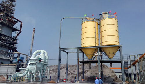 该乐动体育在线建成的5万吨石灰石制粉项目,是将石灰石筛下物通过上料系统进入磨粉机,物料研磨后的细粉随鼓风机的循环风被带入分析机进行分选,细度过粗的物料落回重磨,合格细粉则随气流进入成品旋风集粉器,经出粉管排出,即为成品石灰石粉。