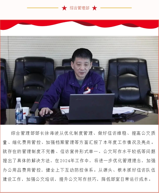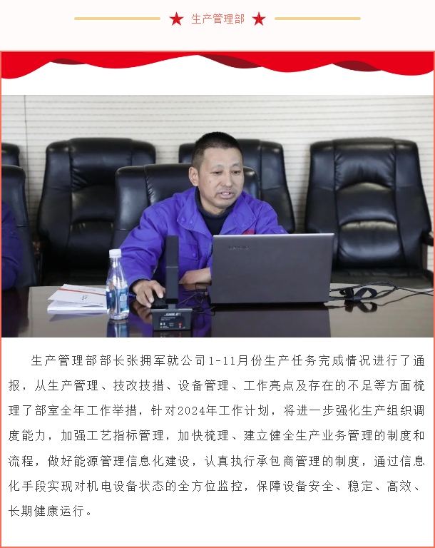12月22日,乐动体育在线召开2023年工作总结及2024年工作规划务虚会,回顾总结2023年工作完成情况,谋划研究2024年工作目标、工作重点、工作举措。乐动体育在线在家领导班子成员、中层管理干部参加会议。