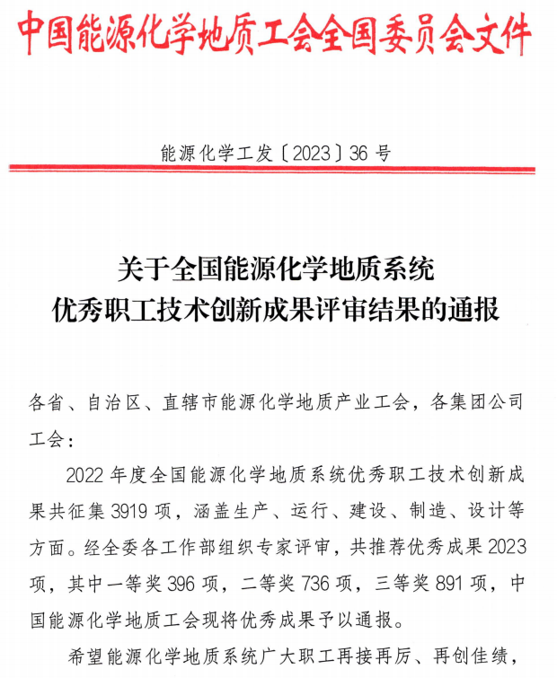 近日,从中国能源化学地质工会传来喜讯,神木煤化工乐动体育在线9个职工技术创新项目荣获全国能源化学地质系统优秀职工技术创新成果奖。