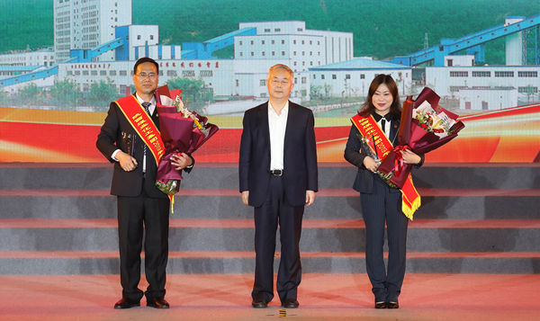 陕钢集团党委书记、董事长杨海峰为最美员工颁奖并合影