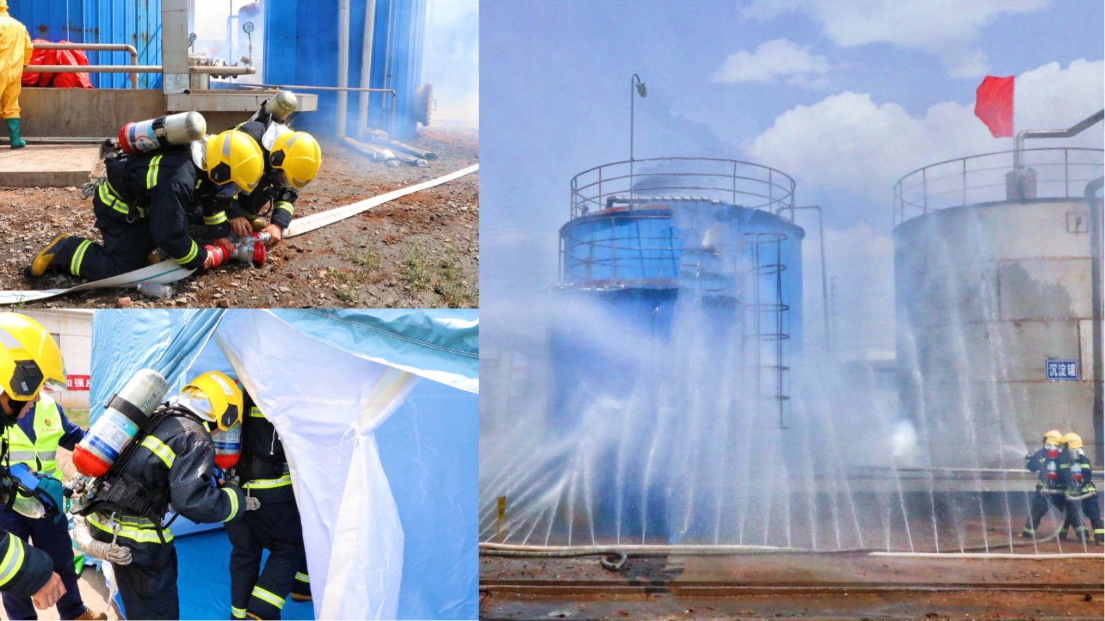 此次演练设定事故等级为一般,假定风向为西北风。假定神木能源发展有限乐动体育在线洁能发电分乐动体育在线脱销氨水罐区3#氨水罐底部人孔法兰泄漏,造成一名员工中毒,并对大气和污水系统造成污染,迅速启动乐动体育在线生产安全事故及突发环境事件应急预案进行处置,对受伤员工进行救护,对现场漏点进行处置,并对现场进行洗消稀释,确保洗消稀释后的废水全部进入乐动体育在线事故应急池,同时,不间断检测周边污水及大气污染物浓度。通过演练检验预案的科学性、针对性和实用性,达到锻炼队伍、检验应急处置程序,提升职能部门协调处置能力的目的。